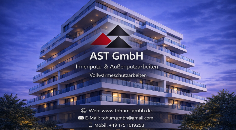 Die AST GmbH aus Limburg an der Lahn ist ein zuverlässiger Fachbetrieb für Innenputz, Außenputz und Vollwärmeschutz. Unser Unternehmen steht für saubere Ausführung, präzise Arbeitsweise und